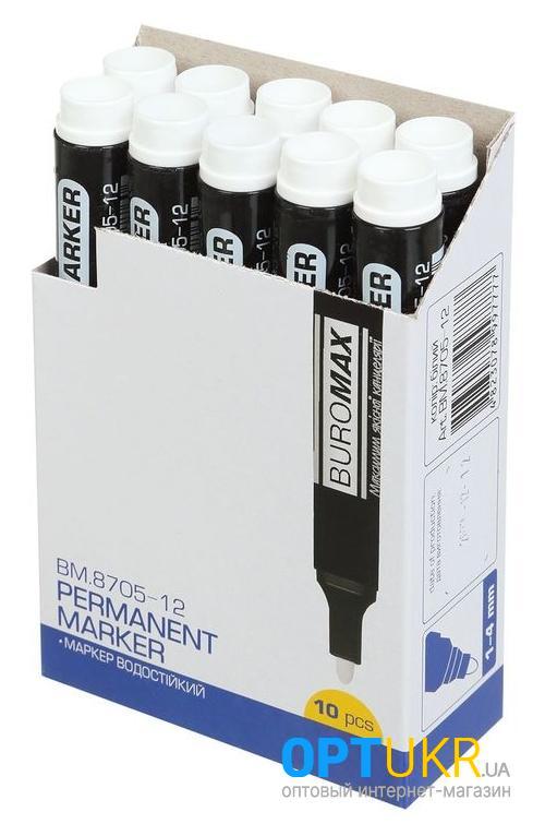 Маркер перманентний BUROMAX водостійкий 1-4 мм Білий Белый BM.8705-12