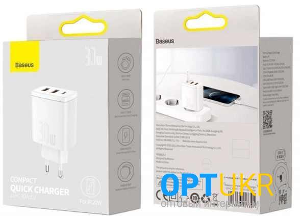 Зарядний пристрій Baseus Compact Quick CCXJ-E02 30W PD + QC3.0 2xUSB + Type-C White