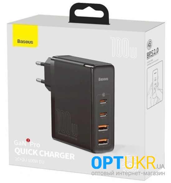 Зарядний пристрій Baseus GaN2 Pro CCGAN2P-L01 100W PD + QC3.0 2xUSB + 2xType-C Black