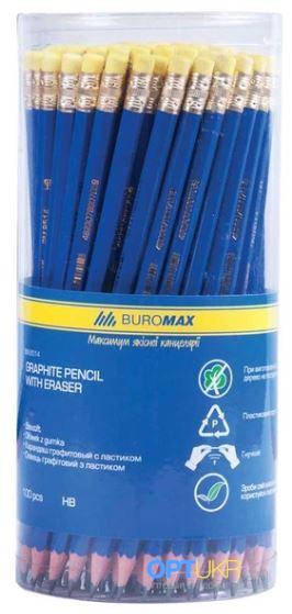 Карандаш графитовый BUROMAX Professional НВ Деревяный с ластиком Желтый Туба 144шт BM.8515