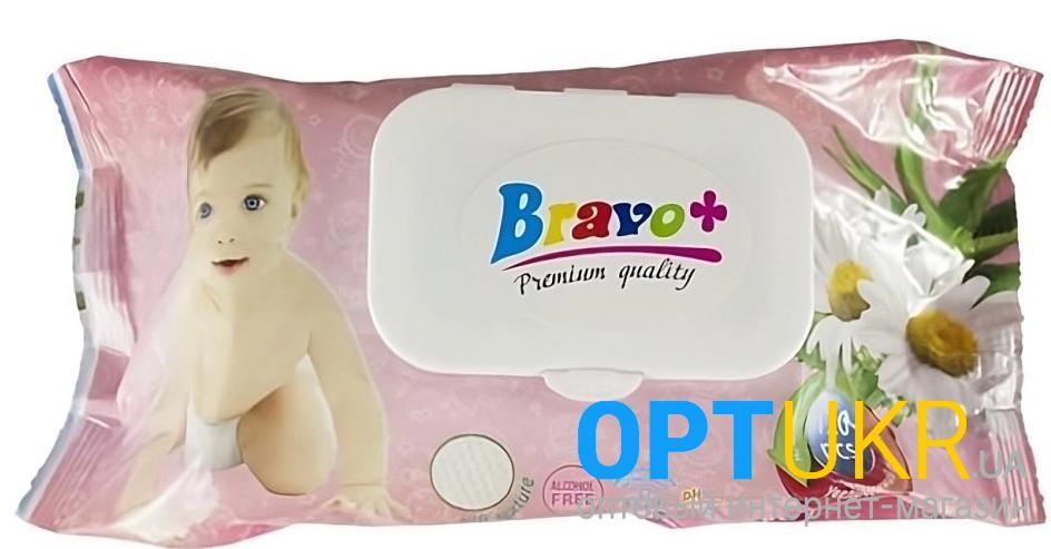 Серветки вологі Bravo+ Дитячі клапан 120шт